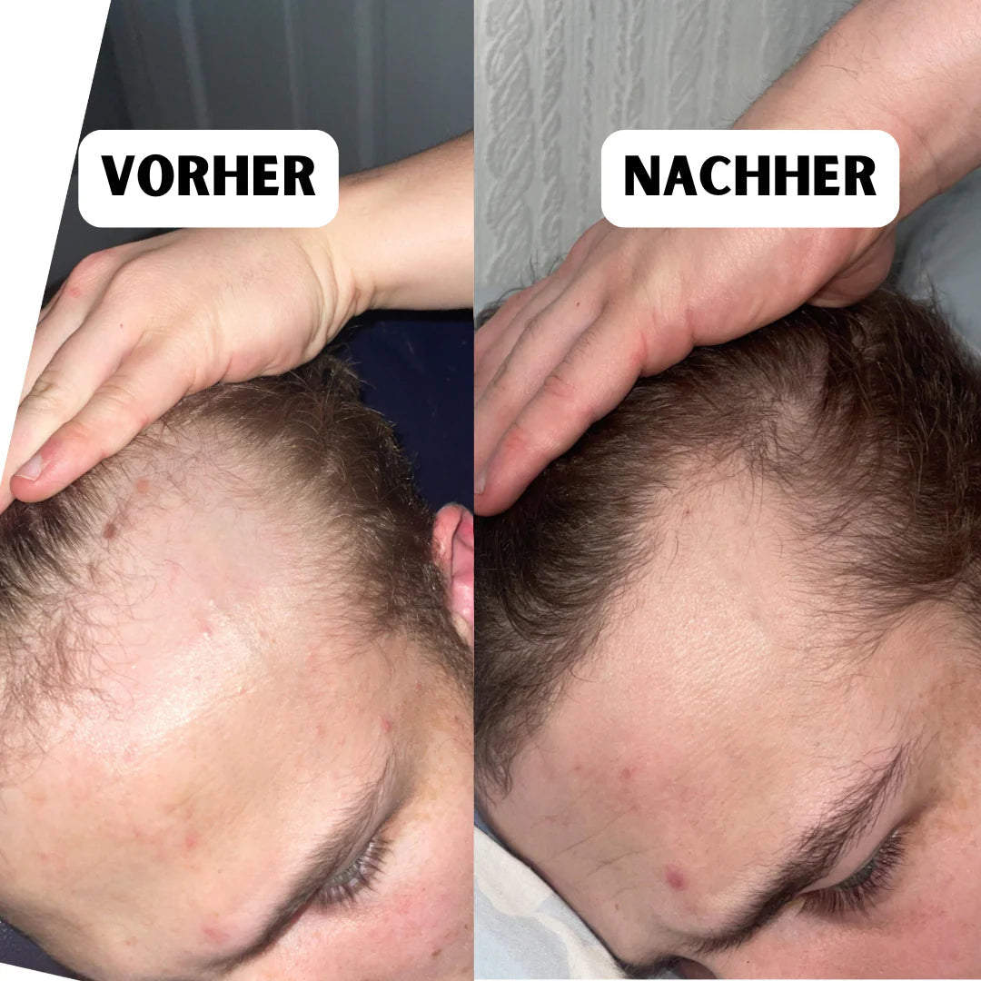 - Einige Tropfen Öl direkt auf die Kopfhaut geben und mit den Fingerspitzen 2–3 Minuten sanft einmassieren, bis es eingezogen ist. Ein Ausspülen ist nicht nötig.